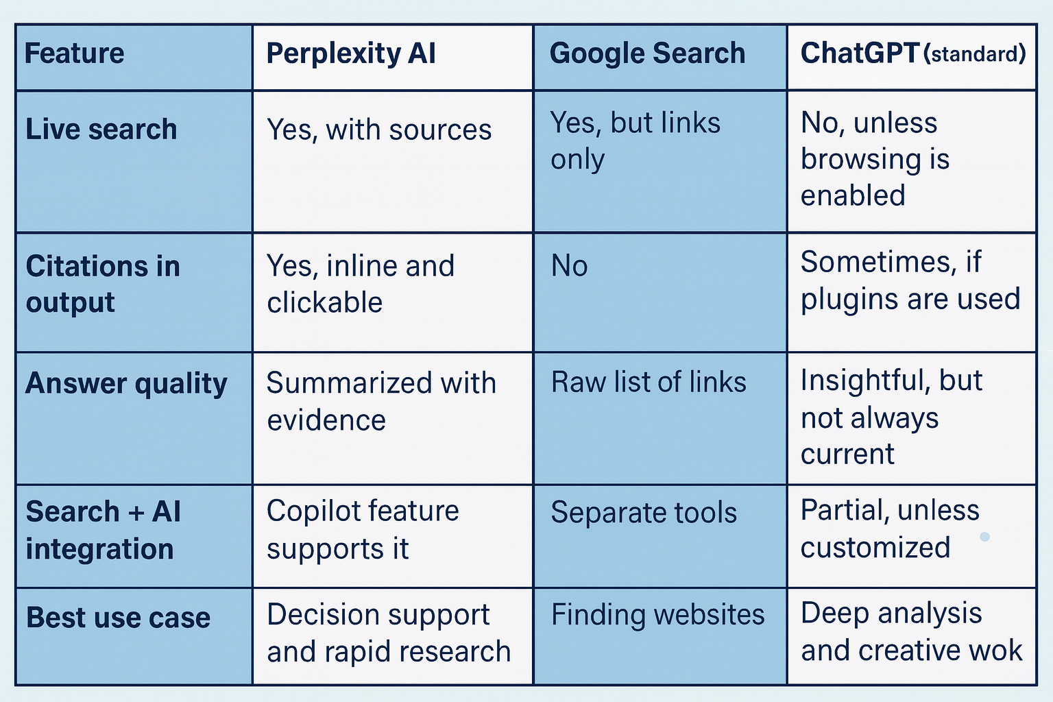 Here is how Perplexity compares with tools you may already use: